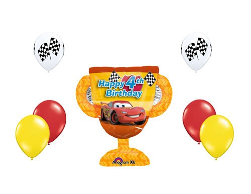 -. Title : Disney Cars Lightning McQueen Happy 4th Birthday Balloon Set Party Trophy Boy