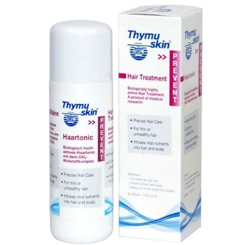 Thymuskin Preveent The right dosage for economical long term use In vitro test models have shown that the Thymuskin ingredient complex in a specific preventative concentration is particulary suitable for use as a preventative measure. Hence, Thymuskin Prevent should be applied Preventatively Hereditary hair loss is often first noticed in the parents. From the receding hairline through to the characteristic monk's pate where, generally, only a circular fringe of hair remains. Characteristic in women the hair becomes thinner with age and the scalp becomes visible. Applied early, before the first hairs fall out, Thymuskin Prevent can have a beneficial delaying effect on the typical course of androgenetic alopecia hereditary hair loss. For early and mild hair loss The dosage of the Thymuskin Prevent ingredient complex is sufficient to counter hair loss in the early stage effectively After successful treatment of hair loss with Thymuskin Hair loss is eliminated and it is desirable to maintain this state. Since the cause of hereditary hair loss cannot be eliminated, long term use is important. Thymuskin Prevent is suitable here, since it only contains as much active ingredient as is necessary and, hence, helps to keep the costs for the necessary long term use with reason. The success of Thymuskin for hair loss is based on the biological activity of the synthetic ingredient complex, Thymuskin. This invigorates and activates the immune defenses in the hair and skin cells. Thymuskin increases cell vitality, the remaining hair follicles are reactivated, the formation of new hair is stimulated and the growth phase is markedly extended. Depending on the preparation, the Thymuskin ingredient complex consists of various dosages with different excipients. Consequently, specific targeted effects can be achieved.Feature