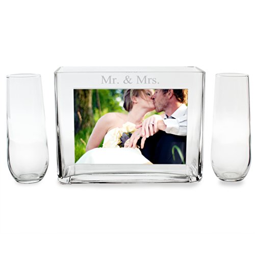 Features: Mr. and Mrs. engraved along the top, photo slot and thick, weighted glass
