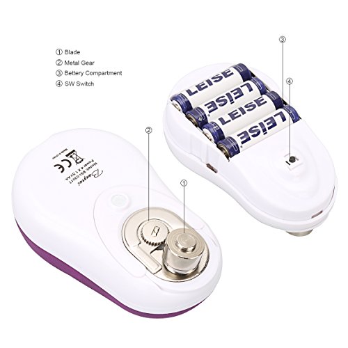 Energy-Efficient Can Opener: 4 AA Batteries required(not included), more than 50 times opening if the batteries are full charged (Workload 1.2A).
