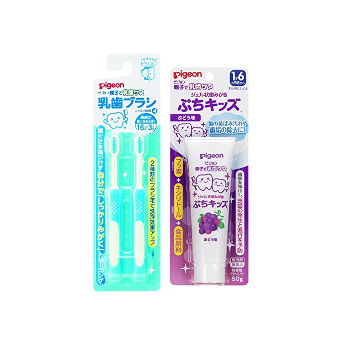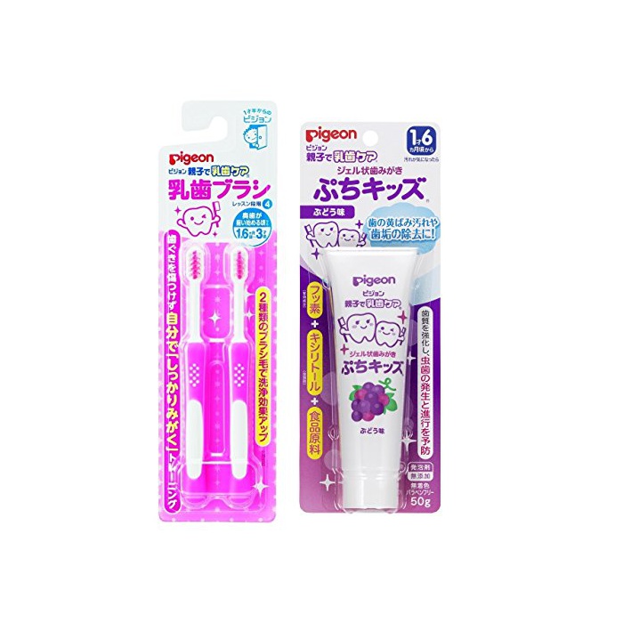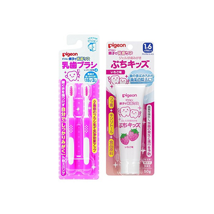 이 세트 구매 상품에는「피존 유칫솔 핑크 레슨 단계4 2개입 오이빨이 갖추어져 시작할 무렵부터(1 재6개월~3 재무렵)」와「친자에 유치 케어 젤상 양치질 푸치 키즈 # 어떻게(아무리) 맛 50g」가 포함됩니다