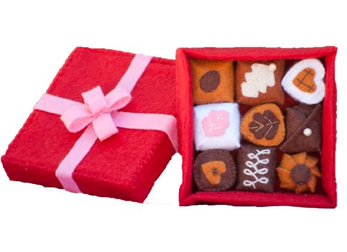 -. Feature : The doll candy box is an 11 piece set and contains 9 chocolates, a square box, and a square lid with an intricate bow. / The chocolates are made with a soft felt material and filled with plush stuffing. / Each piece of the doll candy is embroidered with detailed stitching. / Yummy dolls food for all of your dolls! / Comes gift-wrapped ready in our Pen Pal inspired packaging