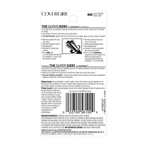 COVERGIRL Super Sizer by LashBlast Mascara, 1 Tube (0.4 oz), Very Black Color, SuperSizer Volumizing Brush, For All Eye Colors & Skin Tones...