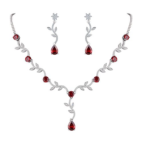 -. Title : FANZE Women's Cubic Zirconia Elegant Sunflower Leaves Vine Teardrop Bridal Pendant Necklace Dangle Earrings Jewelry Set