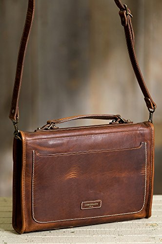Studio : Overland Sheepskin Co. Publisher : Overland Sheepskin Co. Product Description Our elegant briefcase keeps everyday carry organized and simple. American-made of Horween vegetable-tanned cowhide leather, and lined with brushed bull denim cotton, this premium briefcase carries business or personal gear for work, school, or travel. Carry by the sturdy top handle or wear the detachable, adjustable shoulder strap. - Front flap with brass turn-lock closure secures your contents