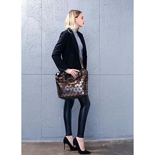 Diamond Lattice Handbag for Women - Glossy Convertible Shoulder Tote Bag with Adjustable Handles - PU Leather Fashionable & Tote Bag Purse for Party, Wedding & Causal Use by Draizee