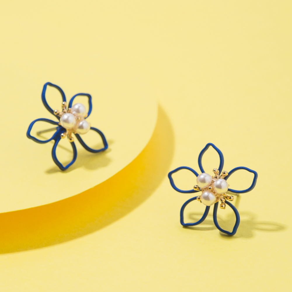 진주 컬러 꽃 라인 귀걸이