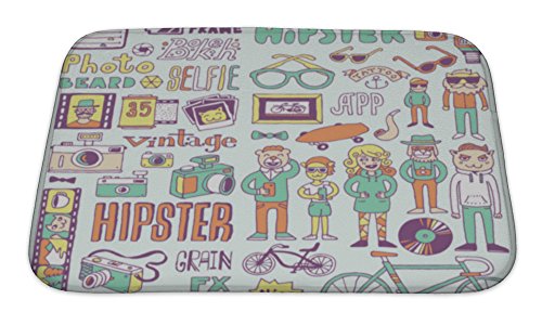 Gear New No Slip Microfiber Memory Foam Funny Colorful on Dark Hipsters Doodle Set Bath Rug Mat, 24" X 17"