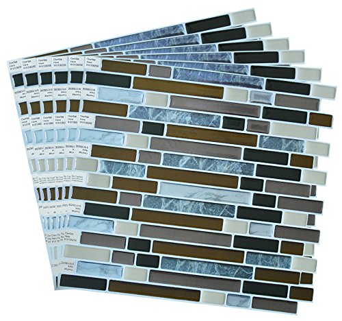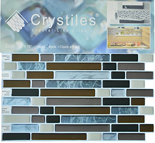 Crystiles Peel and Stick Self-Adhesive DIY Backsplash Stick-on Vinyl Wall Tiles for Kitchen and Bathroom Décor Projects, Item# 91010825, 10” X 10” Each, 6 Sheets Pack