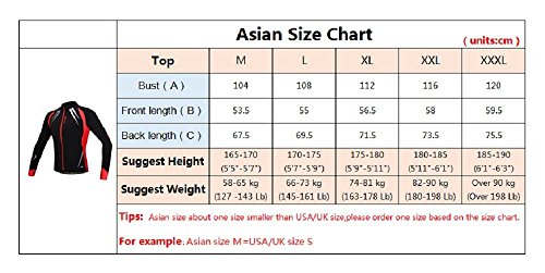 -. Feature : NOTICE:All the sizes we have are ASIAN SIZE,please CHOOSE THE SIZE BASED ON OUR ASIAN SIZE CHART. / REFLECTIVE STRIPS FOR SAFETY - We care about your safety so we have included reflective strips so that you can ride securely at night. / FINGER HOLE WINDPROOF DESIGN--Cuffs of the cycling jackets have "finger hole", that you can poke your finger into the hole,windproof and prevent the sleeve roll up when you riding. / THE FRONT SIDE IS A BIT SHORT AND IT HAS A LONGER BACKSIDE,it keeps your waist warm when you are bending to riding.and when you are hiking,running or other outdoor sports it is comfortable to have the jacket that sits near the waist without touring your legs when you flex them up / Pockets at the back,convenience for carrying your personal stuff when cycling.