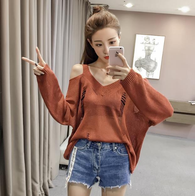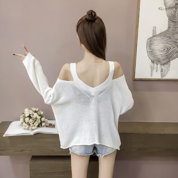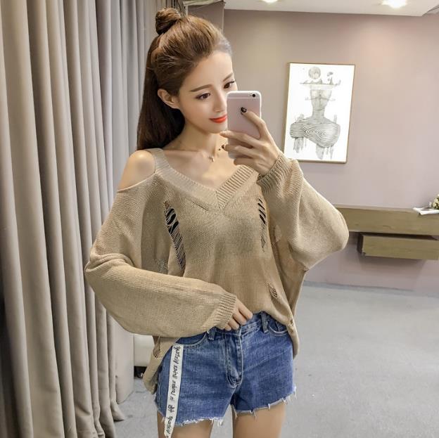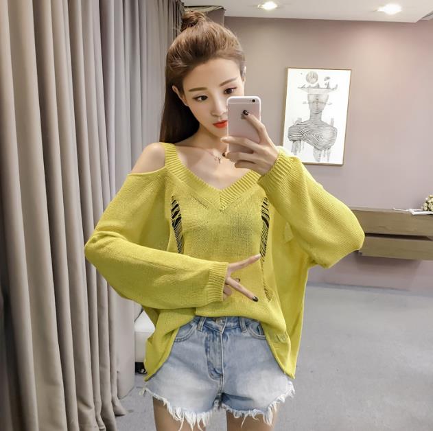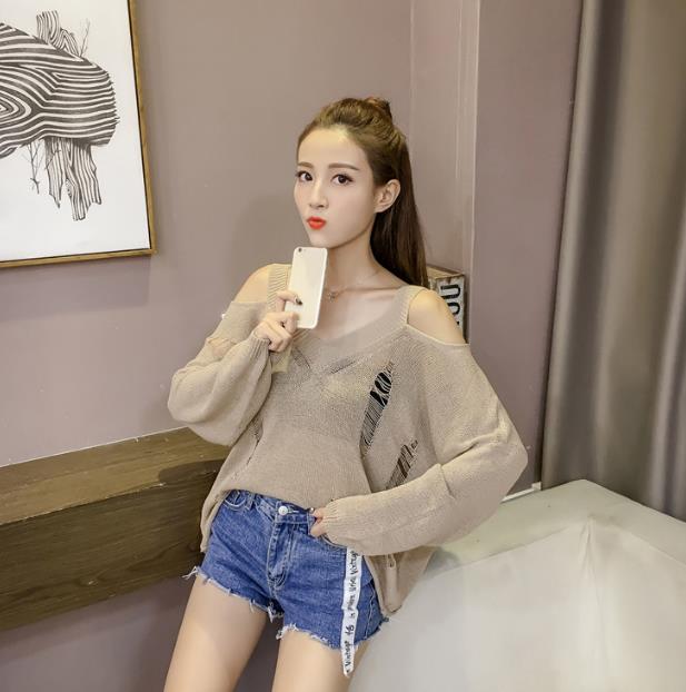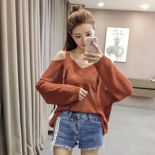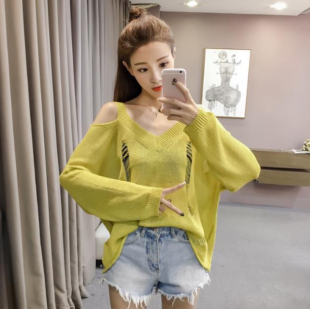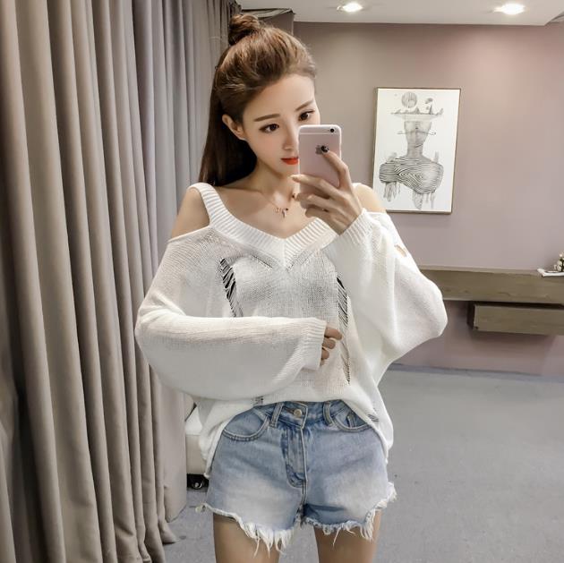Mine Off-Shoulder Sissy Knit Autumn 4color 20s Women's Shoulder Tight Sticks Sticks