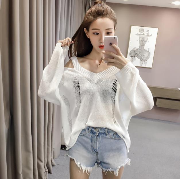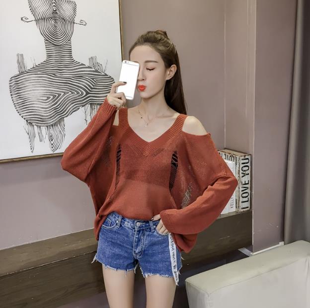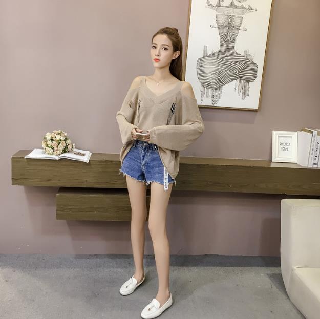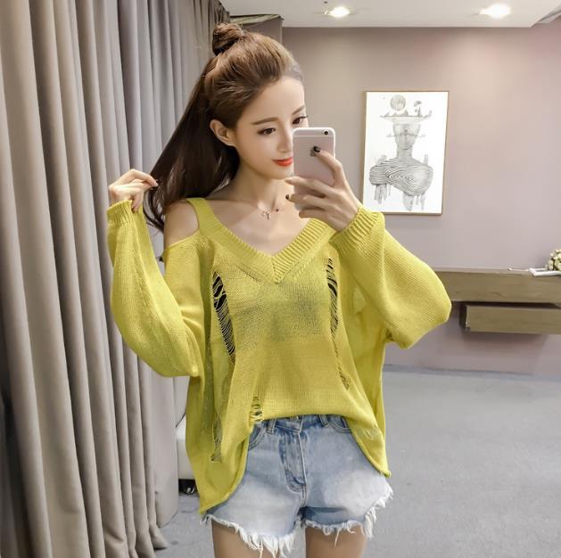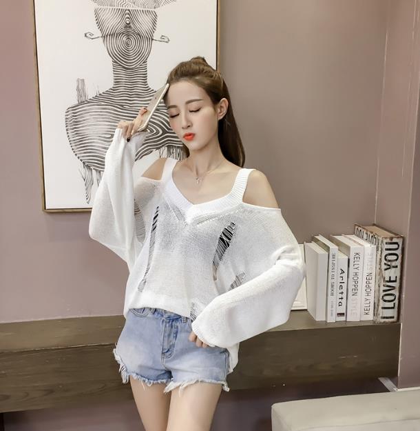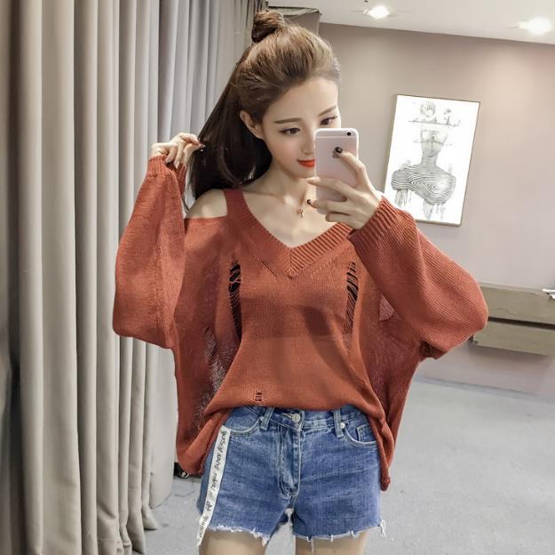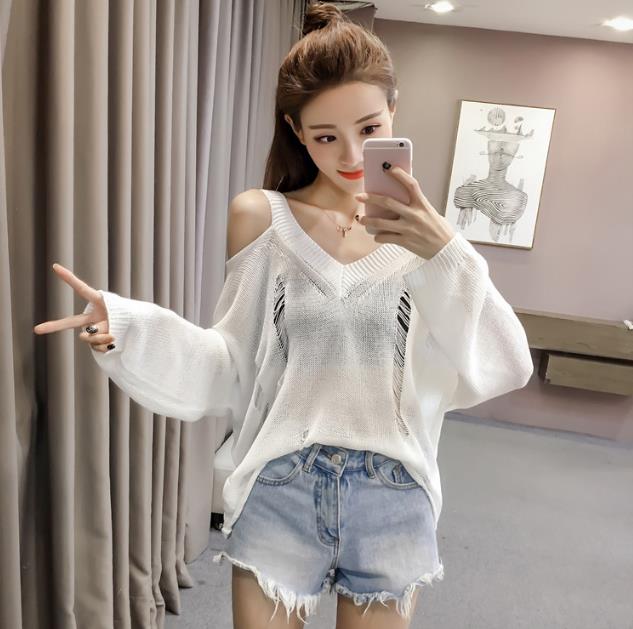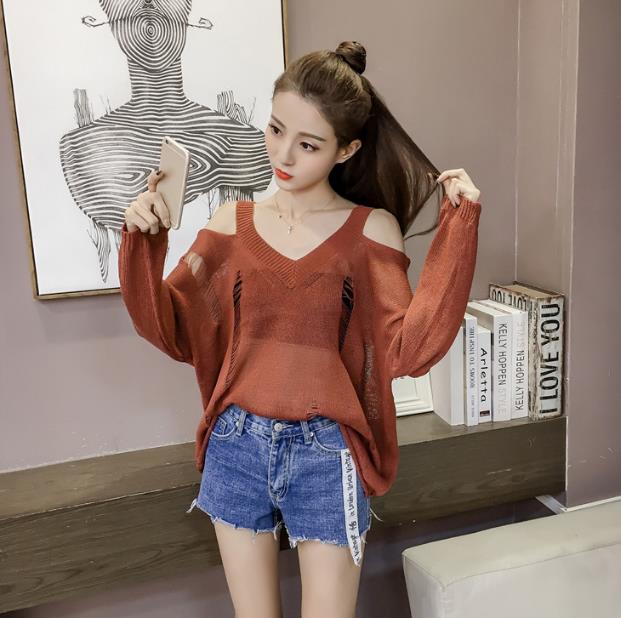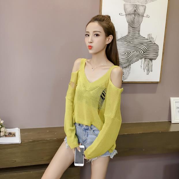 Mine Off-Shoulder Sissy Knit Autumn 4color 20s Women's Shoulder Tight Sticks Sticks