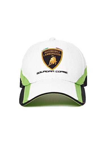 -. Feature : Lamborghini Kid's Squadra Corse Cap, White / This Squadra Corse Automobili Lamborghini cap comes in a bold and unequivocal colour palette of black, mantis green and optical white, which gives this garment a sporty feel / mantis green and optical white, which gives this garment a sporty feel / The signature snorting bull is visible on the front panel whilst the logo of the sponsor Pertamina customises the side. / An adjustable closure with a metal buckle ensures a perfect fit, 100% cotton