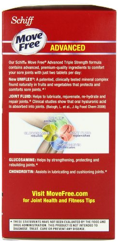 Move Free Triple Strength Glucosamine Chondroitin joint supplements contain premium-quality ingredients, including glucosamine, chondroitin, uniflex, and hyaluronic acid, to promote the health of your joints. Move Free Triple Strength promotes joint flexibility, comfort and lubrication.