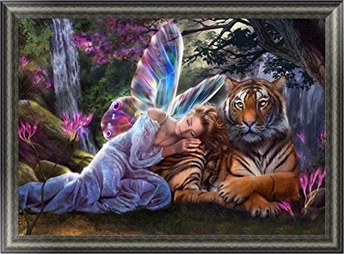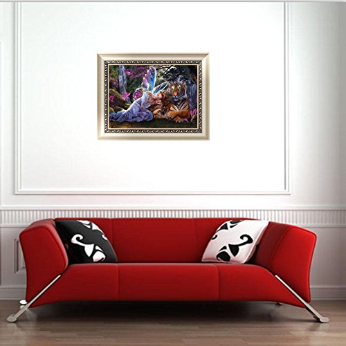 DIY 5D Diamond Painting by Number Kit, Angel and Tiger Crystal Rhinestone Embroidery Cross Stitch Ornaments Arts Craft Canvas Wall Decor