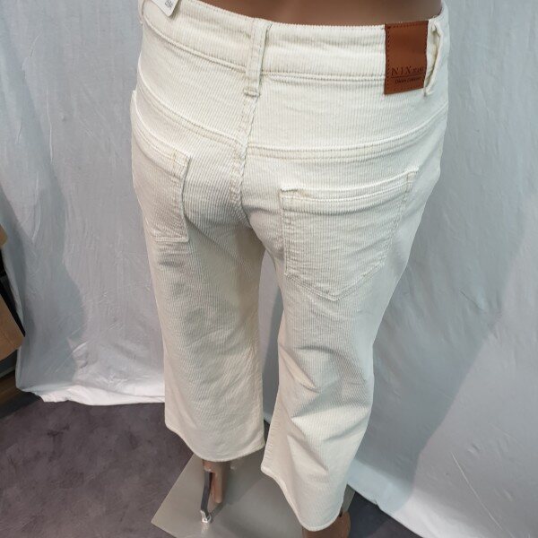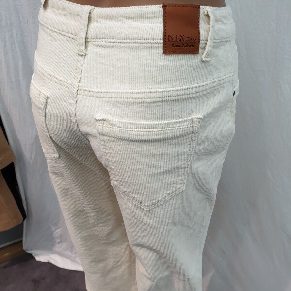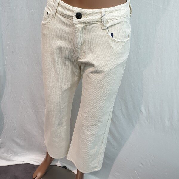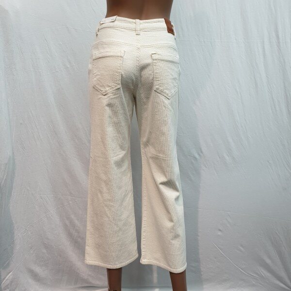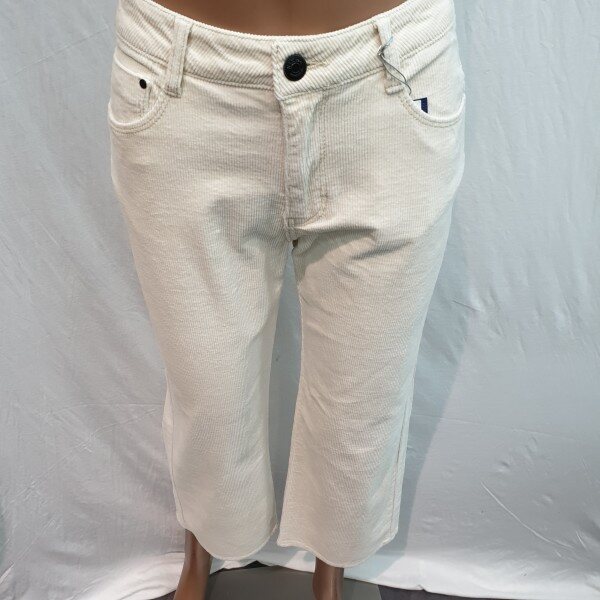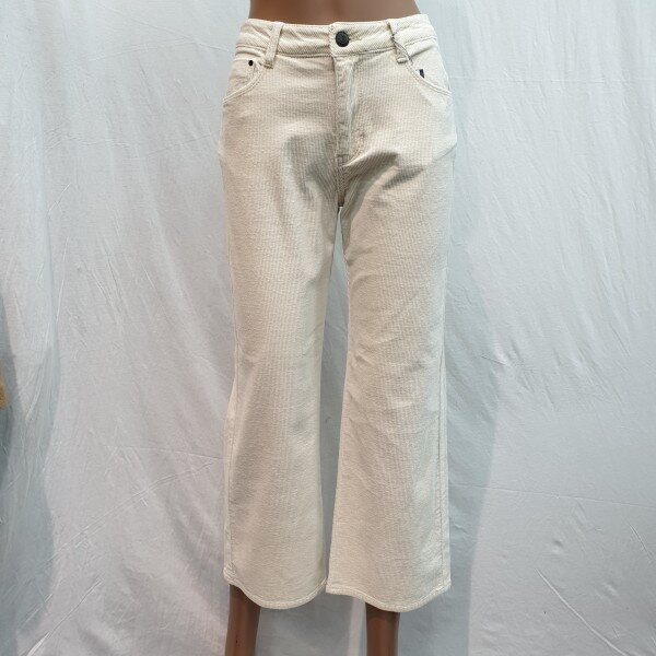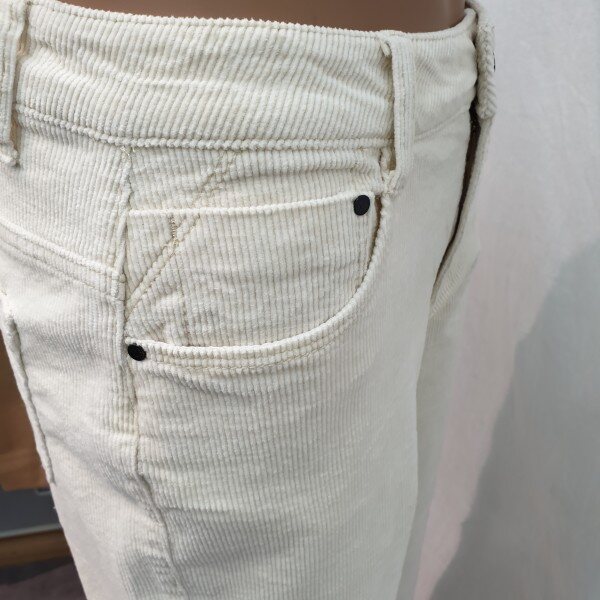 2018년 신상입니다. 최근 트렌드 소재인 코듀로이 스판소재로 아이보리 계열 컬러톤으로 소재 특유의 따뜻함을 느낄 수 있고 스톤워싱으로 입체감을 살린 제품입니다. 크롭 기장의 루즈한 와이드핏으로 브라운 톤이나 블랙 톤의 부츠와 매치해서 입으면 도시적이고 세련되게 연출 가능한 아이템입니다.