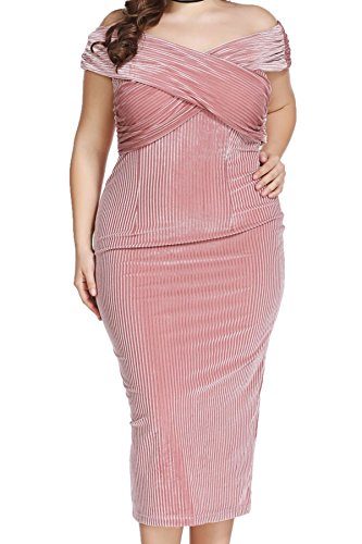 Plus Size Formal Velvet Wrap Long Dress for Cocktail Evening Prom Wedding Party Pink 12 Plus