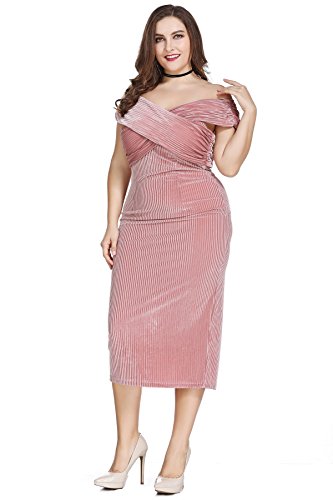 Plus Size Formal Velvet Wrap Long Dress for Cocktail Evening Prom Wedding Party Pink 20 Plus