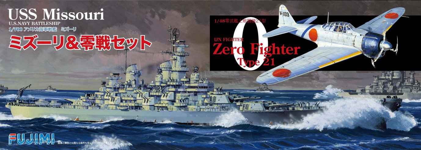 It is a set of Missouri of Iowa class No. 3 ship known as a ship used for the US-Japan signing ceremony and a zero type fighter aircraft.