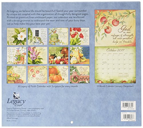 -. Feature : 2017 12-month wall calendar measures 13 3/8 x 12 closed; opened calendar is 13 3/8 x 24 / P.R.Inted in exquisite full color on High quality linen-embossed paper; features a grommet-reinforced drilled hole to ensure tear-free hanging / Features the joyful paintings of Beth yardbrough; includes scripture verses / Packaged in a protective sleeve that showcases the cover image on the front and each monthly image on the back / Legacy invites you to explore their fresh collections of coordinating calendars, to-do-lists, notebooks, address books, recipe boxes and more