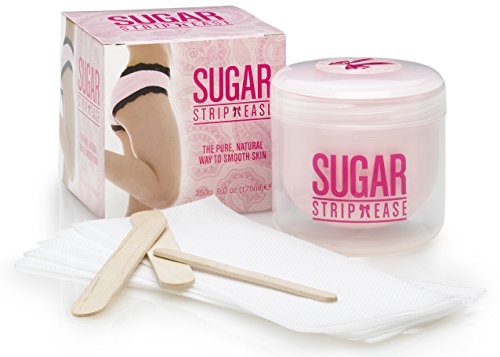 The kit includes 250g Jar of Sugar StripEase and 15 strips and three spatulas for application.