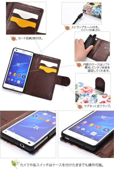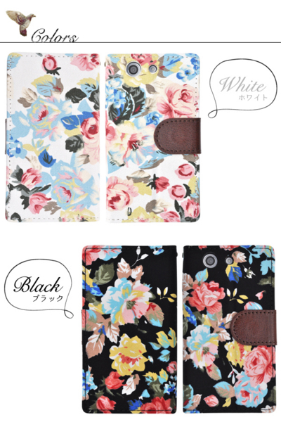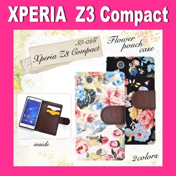 Xperia Z3 Compact SO-02G用のエレガントなフラワーポーチケース。