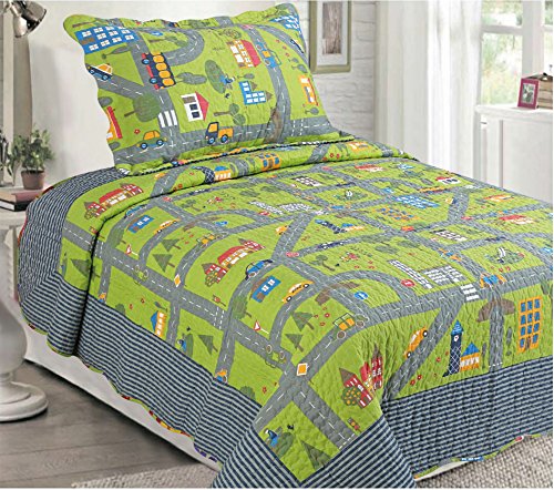 Studio : Luxury Discounts Publisher : Luxury Discounts Product Description Bring a touch of class into your kids bedroom with this Luxurious, 2 Piece Contemporary Design Quilt Set. Bedspreads are designed to keep you updated and fashionable in the most convenient and inexpensive way. Our sets are a tremendous blend of bold and vibrant colors. They can transform a room from bleak to bright and cheery in a matter of minutes. Our bedspread set will have your kids bedroom decorated with design. Turn your home into a haven with our beautiful collection. 0