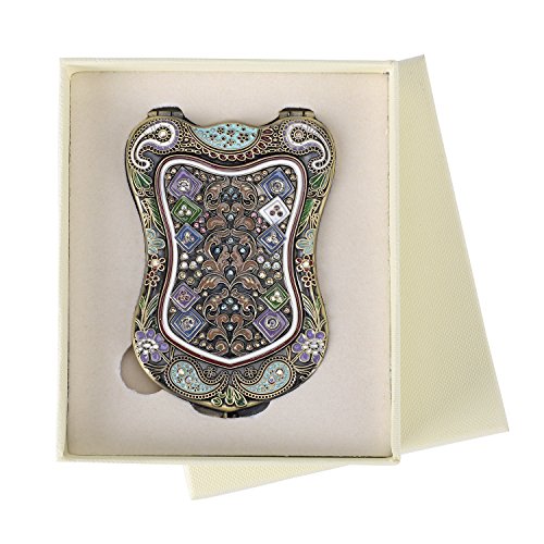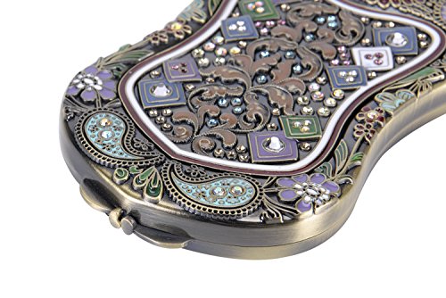 Nerien Women's Magnifying Vintage Foldable Antique-style Shield Vanity Mirror Cosmetic Purse Mirror Portable Travel Mirror Bronze