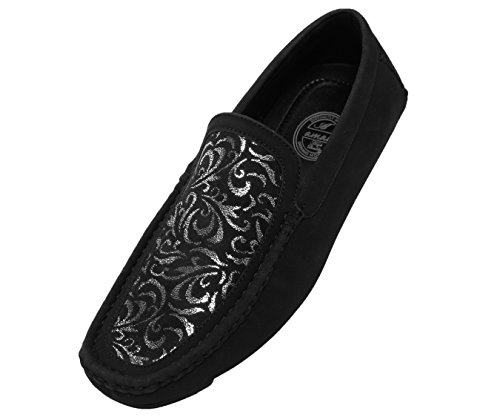 -. Title : Amali Mens Metallic and Black Paisley Driver, Comfortable Dress Loafer Driving Shoe, Style Brunswick