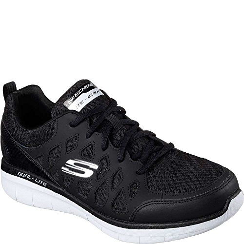 Binding : Apparel Product Description SKECHERS Men's Synergy 2_0 Peslier cross-trainer shoes feature a smooth action leather synthetic and mesh upper. Smooth synthetic overlays for added durability. Lace-up front for a secure fit. Smooth synthetic side and heel overlays. Soft fabric collar and tongue trim. Wraparound synthetic heel panel for added stability. Soft fabric shoe lining. Air Cooled Memory Foam cushioned comfort insole. Shock absorbing Dual-Lite® lightweight midsole for added comfort and range of motion. Rubber traction outsole. 0