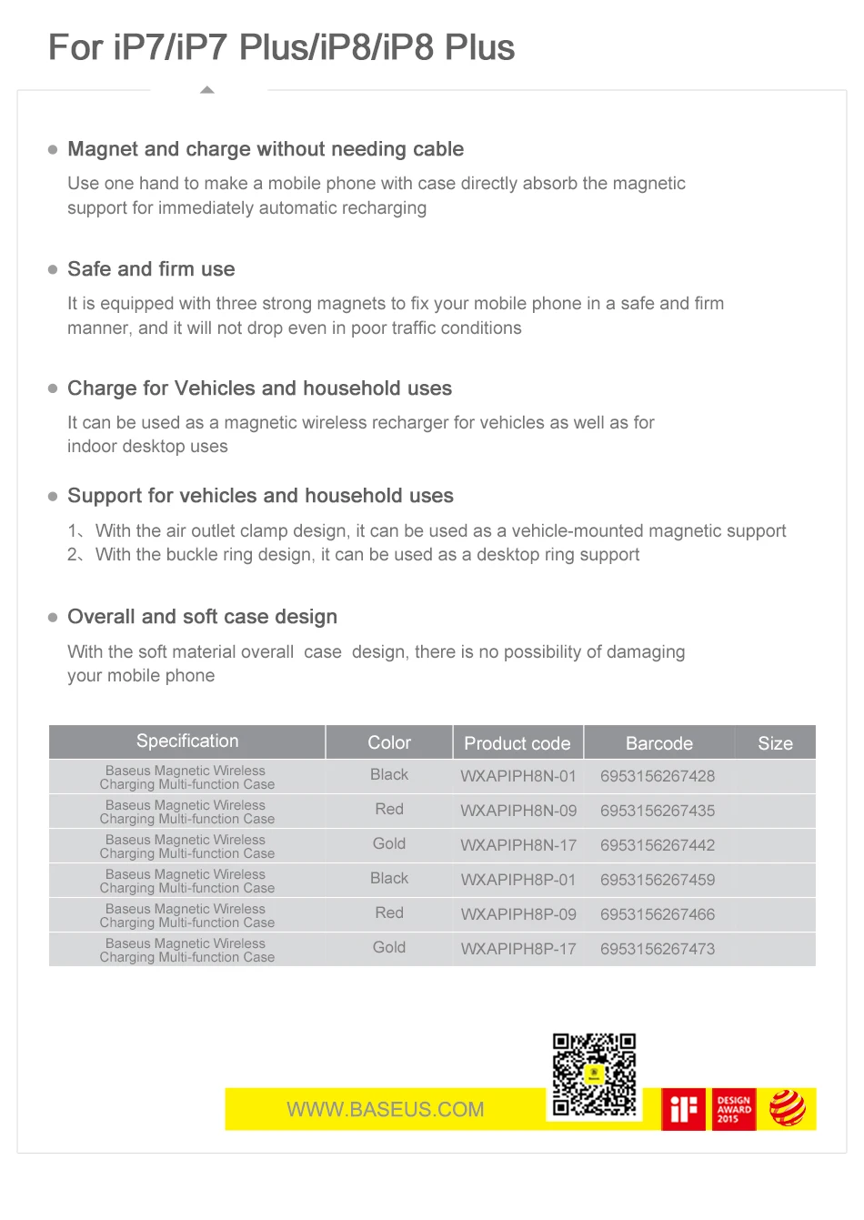 Compatible Model 1:Car Phone Holder For iPhone 7 Wireless Charger Case For iPhone 7 Plus