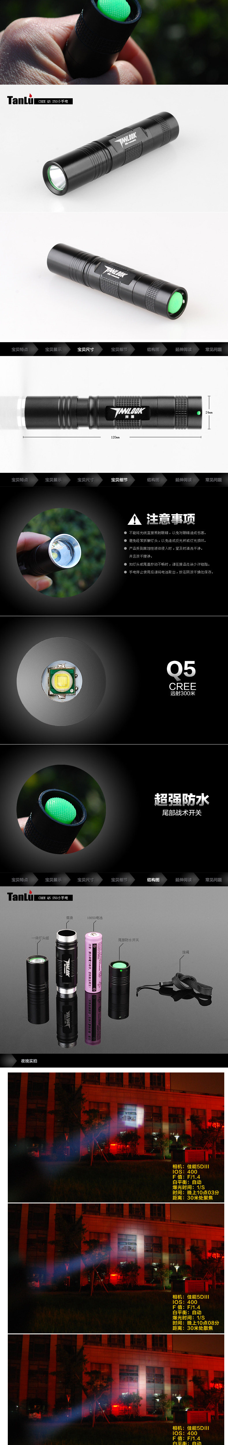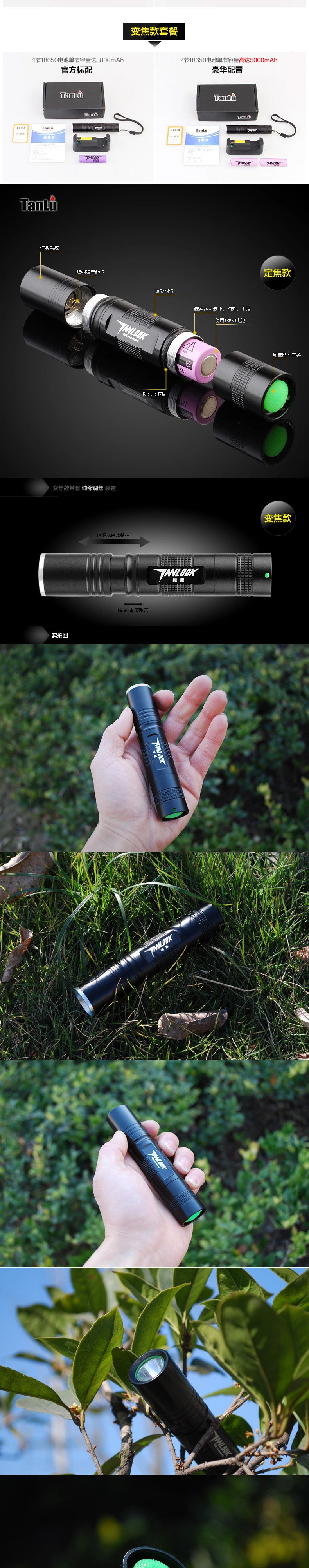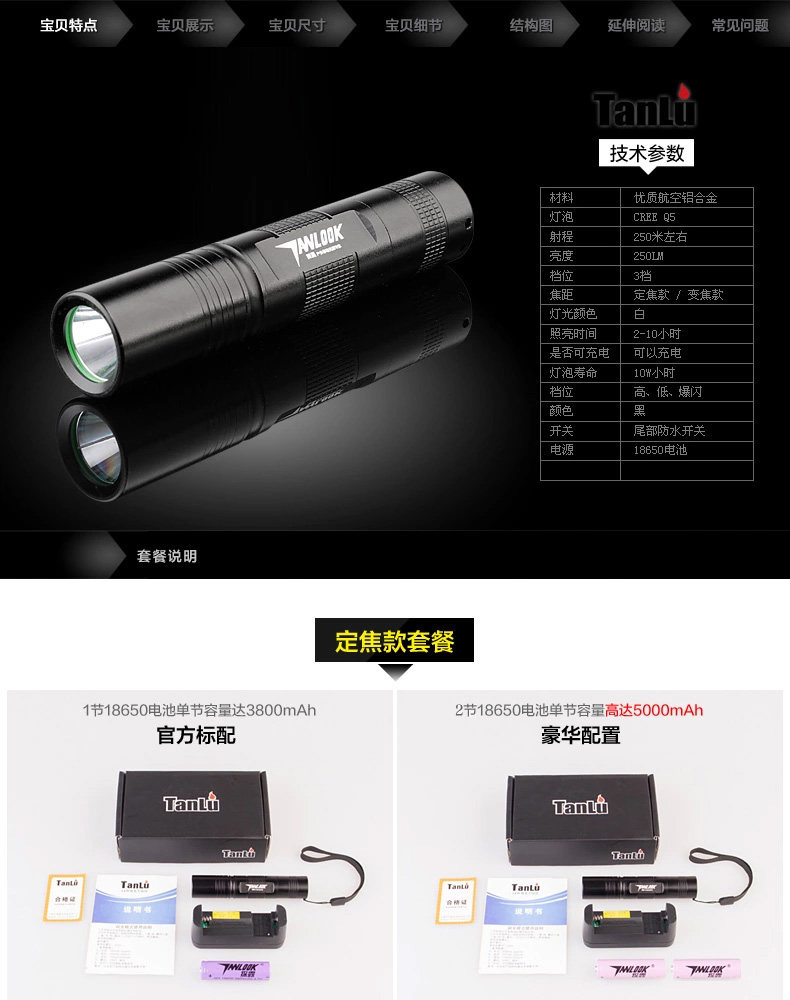 探露正品S50强光手电筒 可充电远射户外迷你防水家用防身骑行变焦