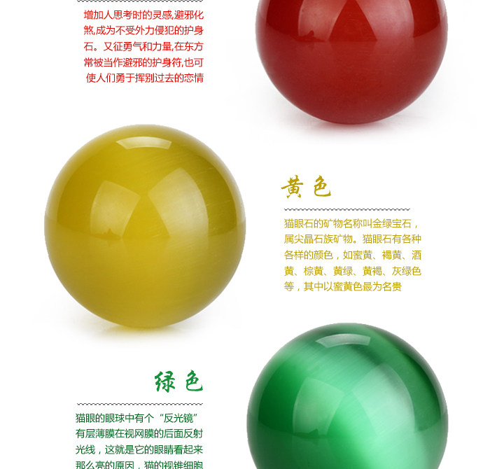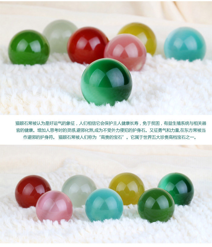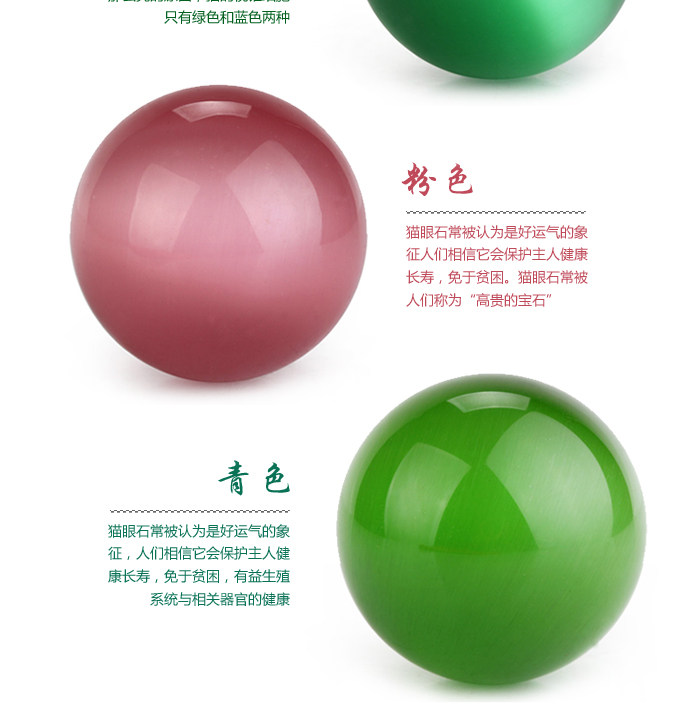 In Southeast Asia, cat's eye stone is often seen as a symbol of good luck, people believe that it will protect master longevity and health, from poverty, useful and relevant organs of the reproductive system health;promote the regeneration and blood circulation, have to raise frequency beauty renew one's youth effect. Can improve the skin problems, to prevent the deterioration of the wound. Increase when people think of inspiration, evil Hua Sha, be not affected by external forces invadedtalisman. Another sign of courage and strength, in the East, often regarded as the talismanic amulet, also can make people have the courage to say goodbye to the past. Cat's eye stone is often known as the "noble gem". It belongs to one of the world's five major preciousgemstones and stone. British gem collectors Hope a famous collection ofcat's eye stone, this stone was carved into the shape of the altar symbol,on top of a torch, the gem spherical, diameter of about 1-1.5 inches.Cat's eye stone is mainly produced in the gas into the hydrothermal deposits and pegmatite vein. The world's most famous origin opal issouthwest of Sri Lanka's Nebraska Ternana and high your land, Brazil and Russia and other countries also found a cat's eye, but very rare.