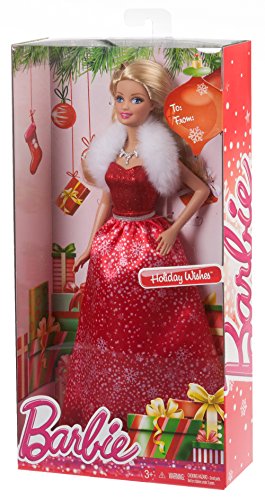 Barbie 2014 Holiday Doll: Celebrate the season in signature Barbie style with this year's Holiday Barbie doll. Dressed in a gorgeous, glam gown, she's ready to brighten any party with a festive glow and glittery look. Her long dress sparkles with wintry details, while a "furry" white stole is a hot accessory on a cool night. A statement necklace and brilliant shoes complete the soiree statement. Happy Holidays! Ages 3 and older.Feature