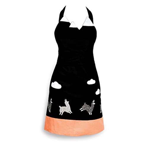 Cotton Women's Fashion Kitchen Bib Apron, Leaping Llamas, Black, White, Peach by Kitsch'n Glam