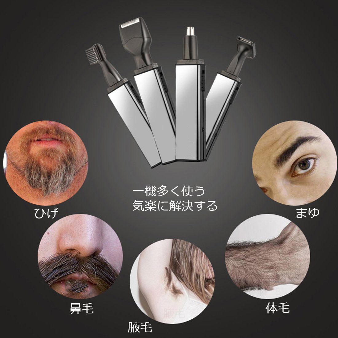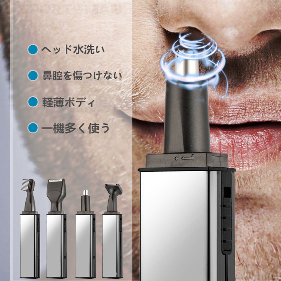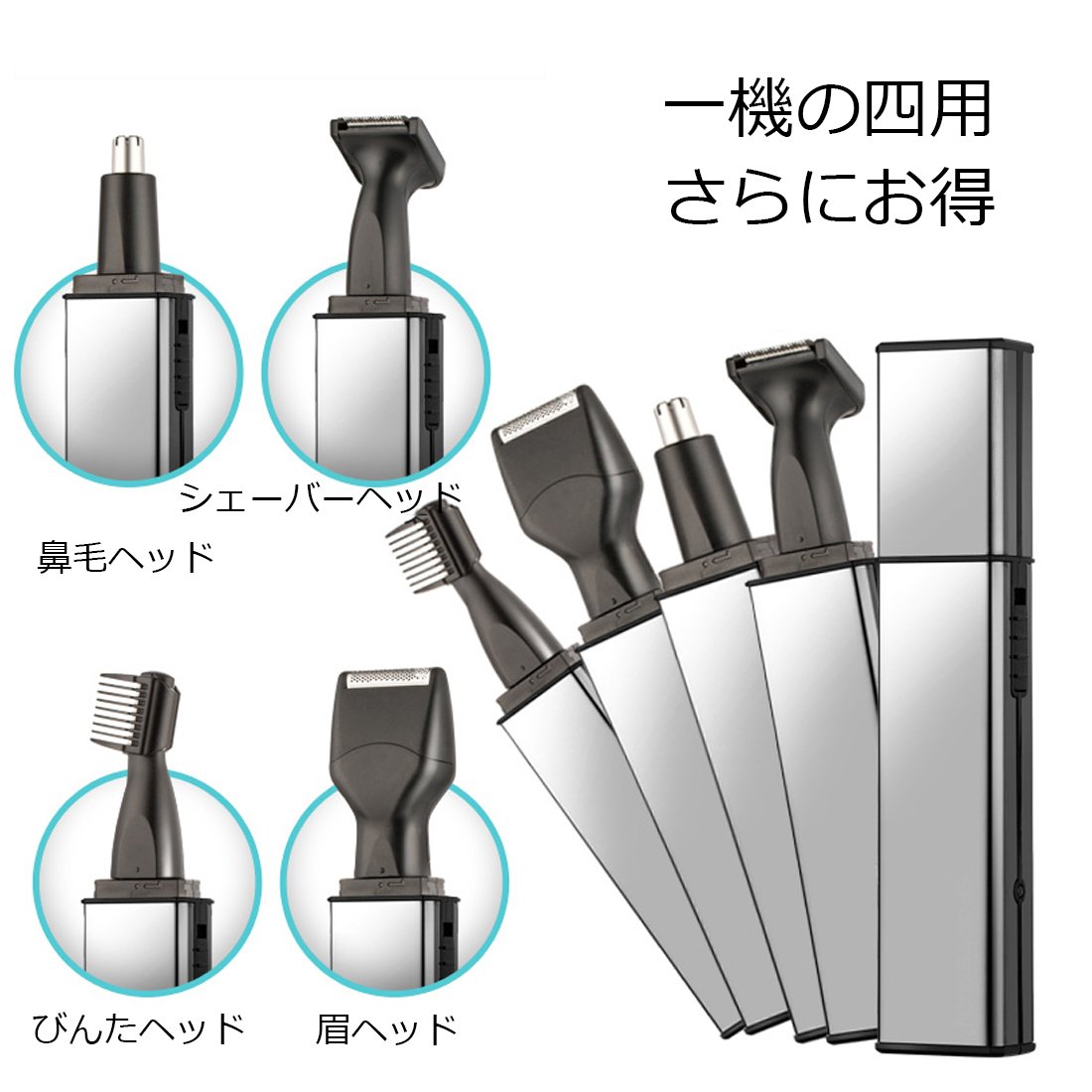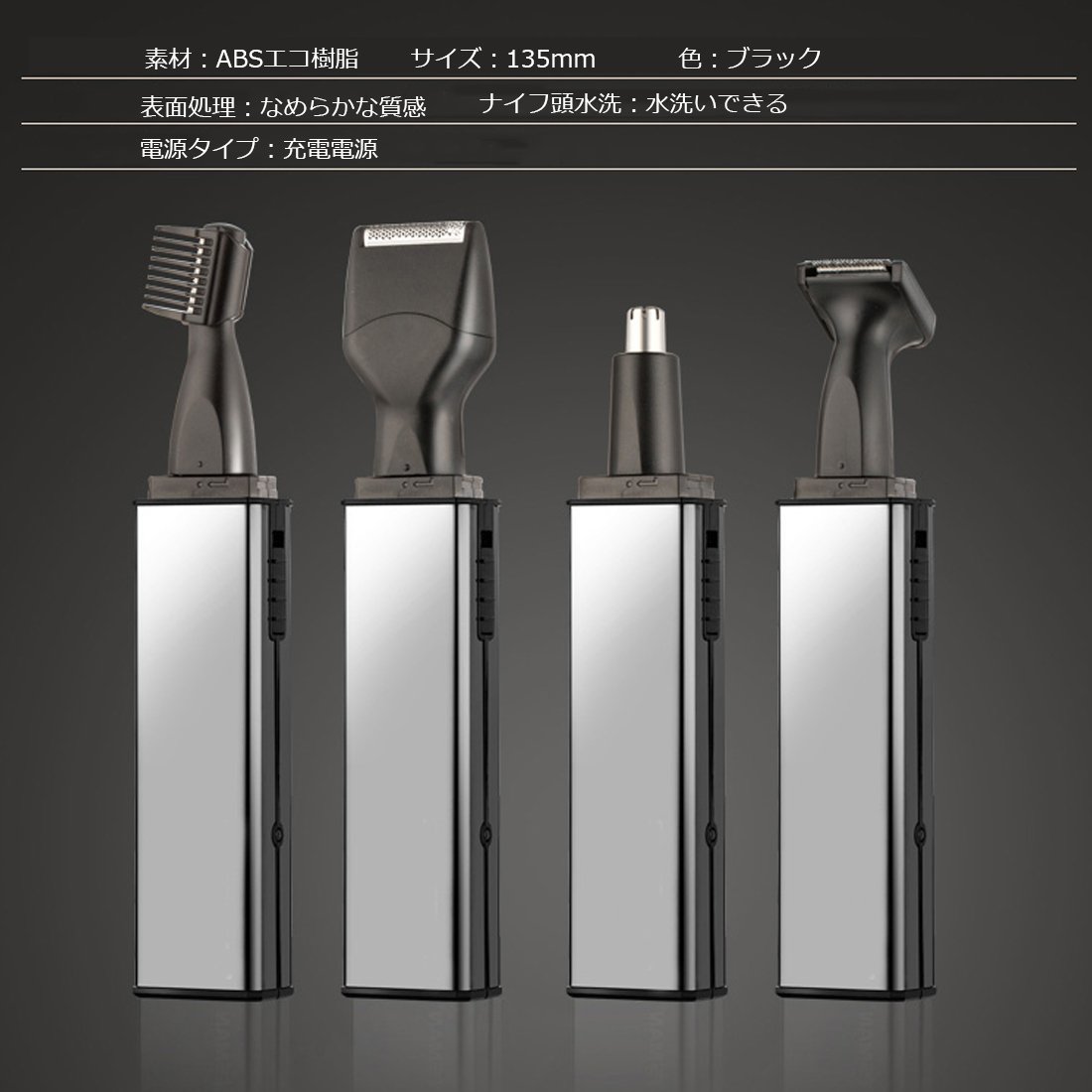Nose hair cutter, ear hair / eyebrow shaver, etiquette cutter, shaving, it is a convenient item of 4 in 1 with various functions just by switching four kinds of heads.