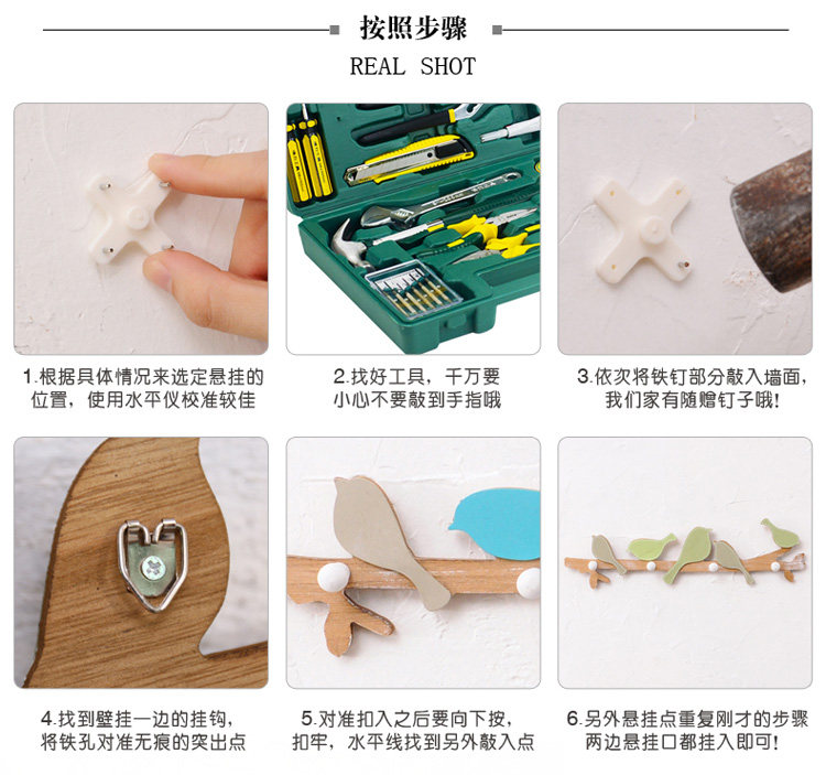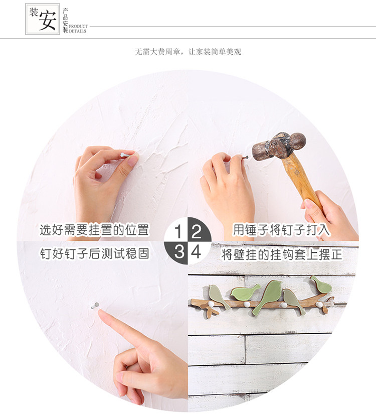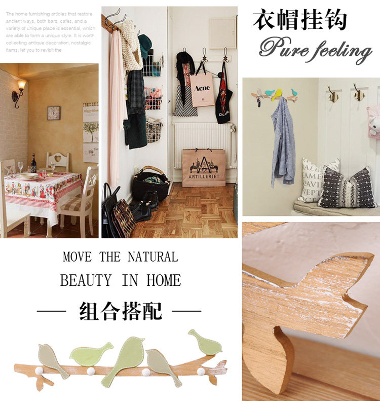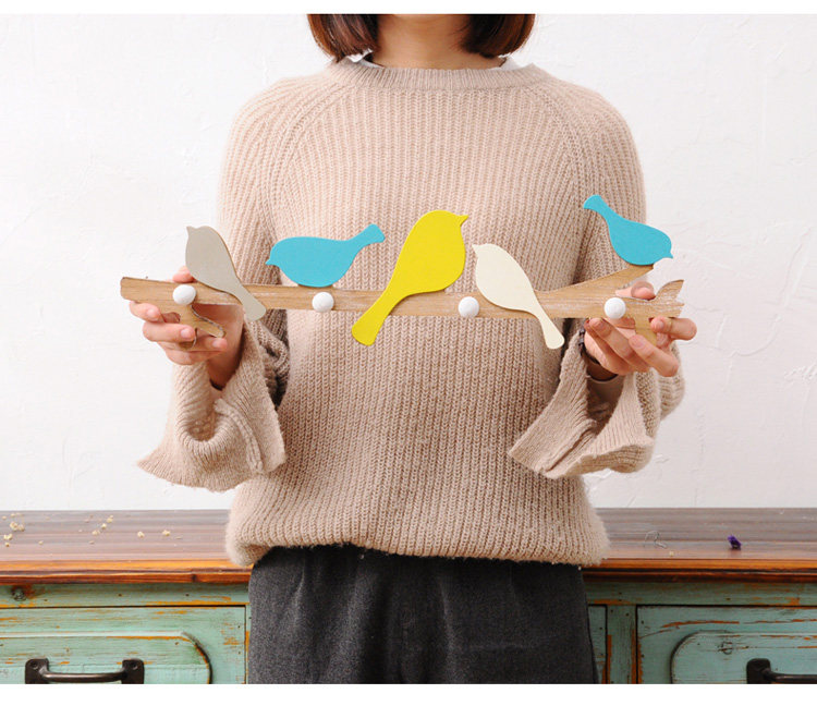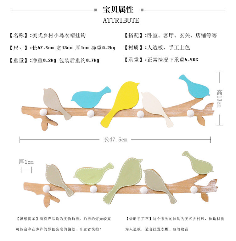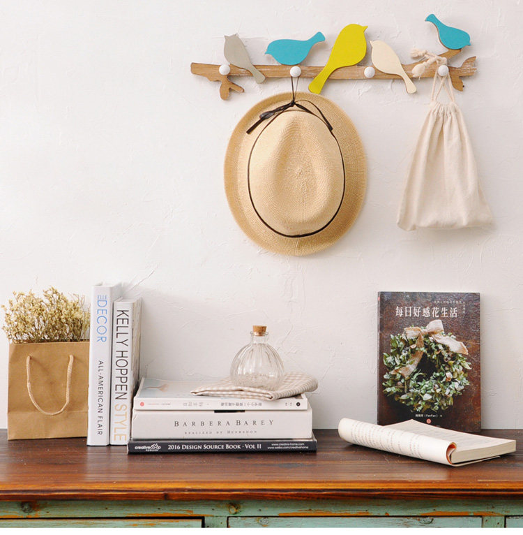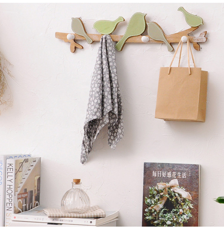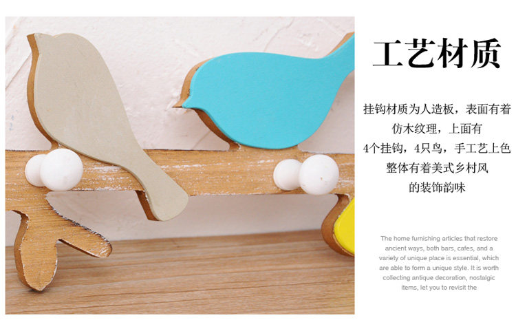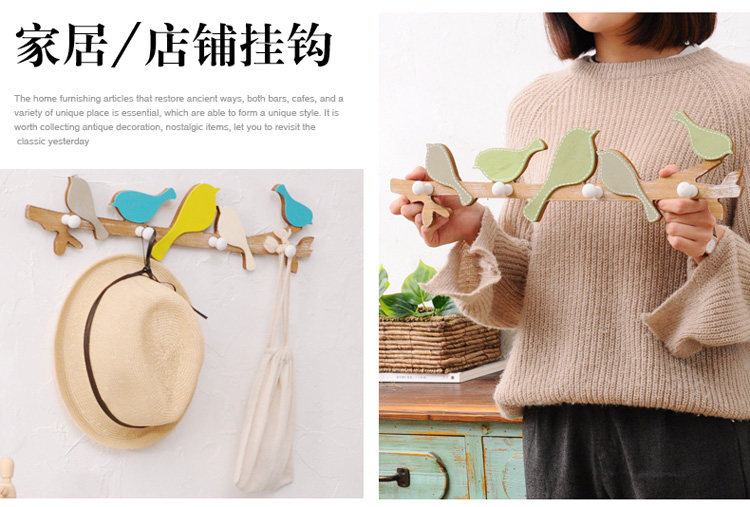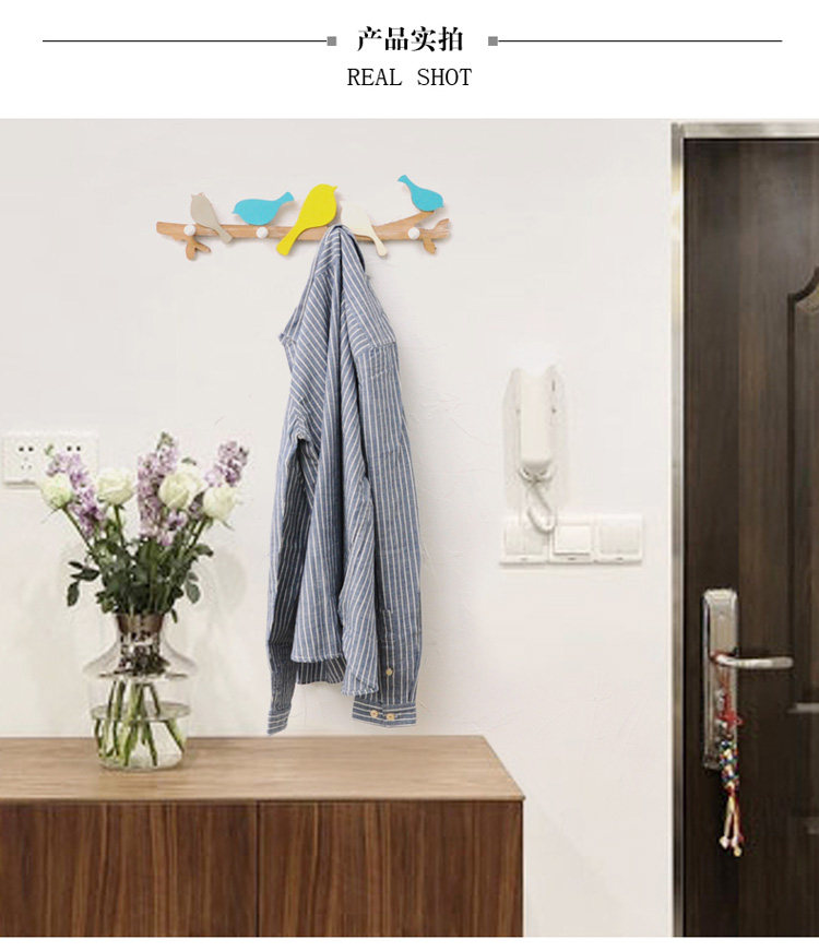 创意木质小鸟玄关挂钩衣帽架壁挂钥匙架衣帽钩墙饰挂件墙壁装饰品
