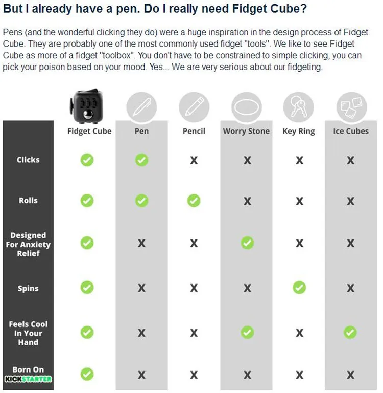 It's simple. Fidget Cube has six sides. Each side features something to fidget with: