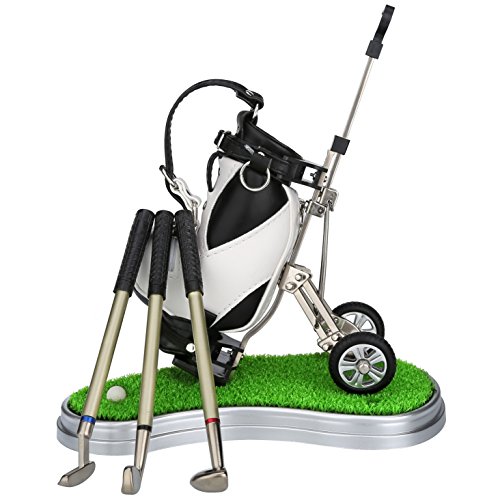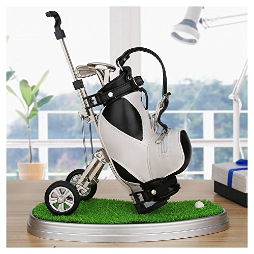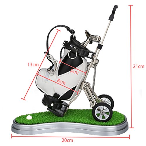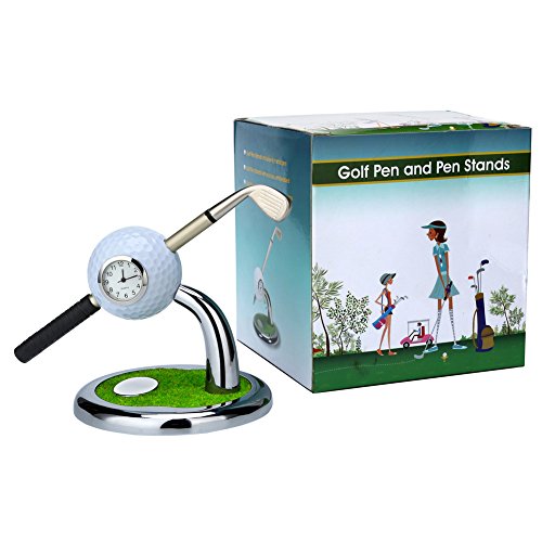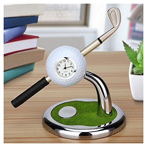 Golf Souvenir with Clock Golf Bag Holder Mini Desktop Gift Novelty Golf Model with Golf Pen