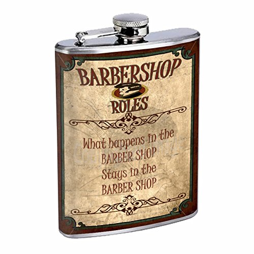 -. Title : Vintage Barbershop Sign S3 Barber Shop Flask Stainless Steel 8oz Hip Silver Whiskey Drinking Spirits Liquor