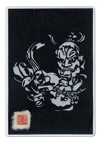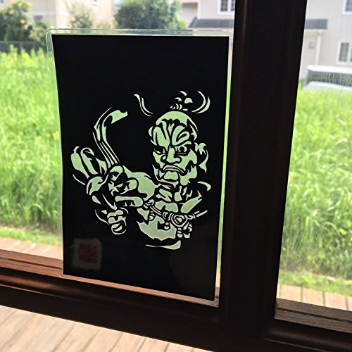 Cutout picture Japanese art collage KIRIE “Todaiji Kongorikishi Un-gyo” Vajradhara(a Deva king who is a guardian of the Buddha) Made by Washi(Japanese paper) Mist Blue, 4” x 6”