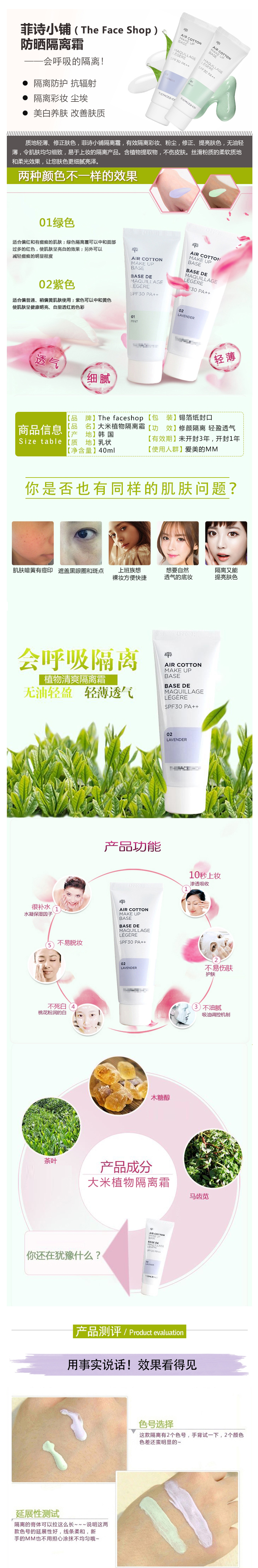 The face shop air cotton makeup base Moisturizing green purple