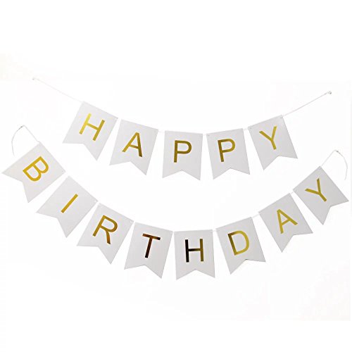 Pastel Perfection White and Gold Foiled Happy Birthday Bunting Banner, Birthday Decorations, Bunting Birthday Banner