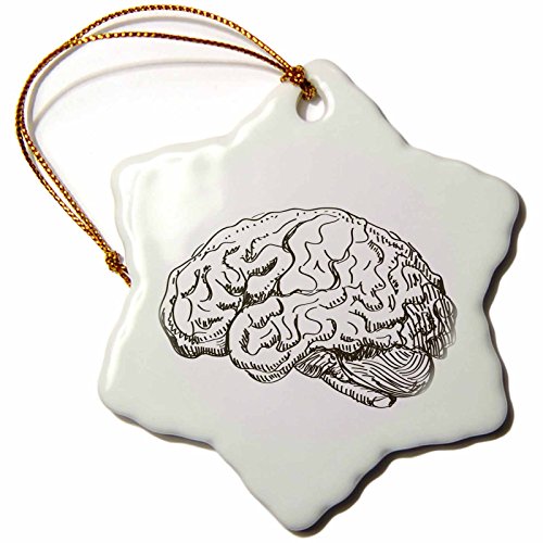 3dRose orn_38393_1 Brain Snowflake Decorative Hanging Ornament, Porcelain, 3-Inch