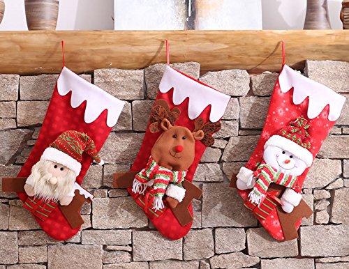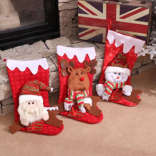 - FUNCTION: Christmas stockings will come in 3 cute Classic role – Santa, Snowman, Reindeer, A special way to celebrate the Christmas. Bring the joy of Christmas to your home. Coordinating Christmas stockings, tree skirts, tabletop, and home décor items also available