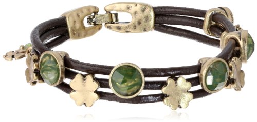 Lucky Brand Green Stone Woven Bracelet, 7.5"