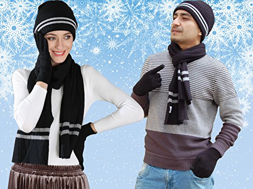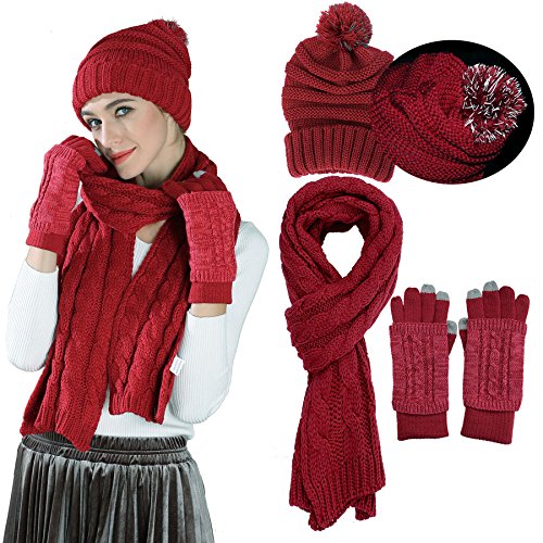Binding : Apparel Product Description 2017 New Fashion 3 Piece Winter Set - Long Folded Scarf Touch Screen Gloves Beanie Hat HIGH QUALITY FABRIC - 100% acrylic fabric, cozy and soft without any uncomfortable feeling. Good thermal insulation, keep your head ears and hands warm. TOUCH SCREEN GLOVES - Sensitive touch screen design for texting message and playing smartphone games. With high-tech screen-touch fingertips in the index fingers, thumbs and middle finger of the glove, you can operate cell phone and tablet as normally, while keeping your hands warm in cold weather. REFLECTIVE FILAMENT MATERIAL - High quality reflective silk material, when worn at night, reflective effect is strong. A reflective strip, unique and double protection travel safety. Trendy wearable experience, everyone can see the unique you at one glance in the dark light environment. OUTSTANDING GIFT COMBO - Classic fashion design, many colors to meet different needs, it can be selected to match different clothes. Ideal for skiing, skating, jogging, travelling and any other winter outdoor activities. Outstanding gift combo to give to friends family. 0