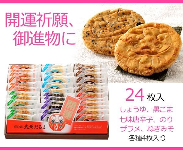 | セット内容 | 24枚入(各種4枚) しょうゆ、黒ごま、七味唐辛子、のり、ザラメ、ねぎみそ |