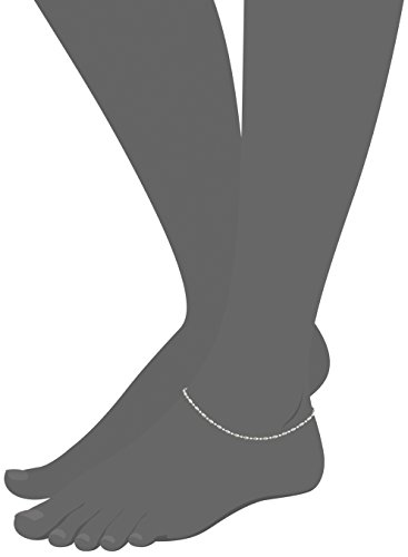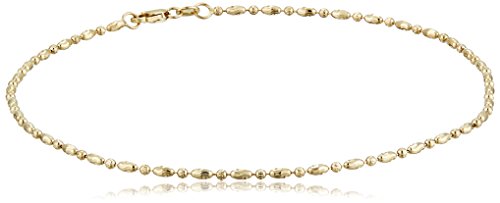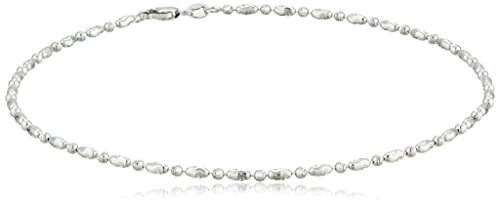 14k White Gold Diamond-Cut Oval and Round Bead Mezzaluna Chain Anklet, 10"