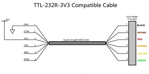 USB to TTL 3.3V Serial UART Converter Cable with FTDI Chip Terminated by 6 Way Header, Works with Galileo Gen2 Boards/BeagleBone Black/Minnowboard Max and more